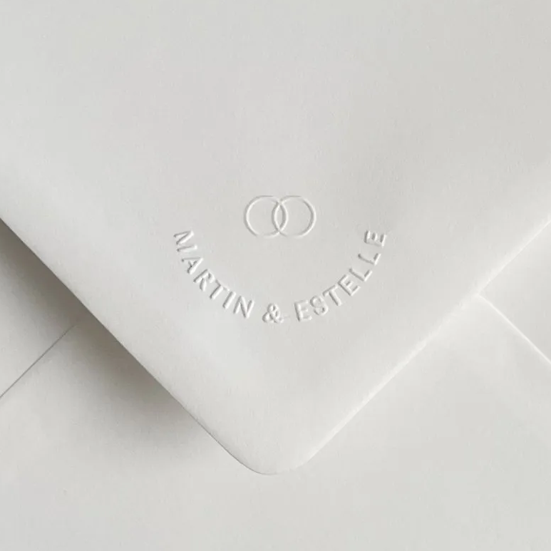 Daarnaast is het mogelijk om een persoonlijke preegstempel te laten maken. Met bijvoorbeeld jullie trouwlogo, jullie namen of initialen.